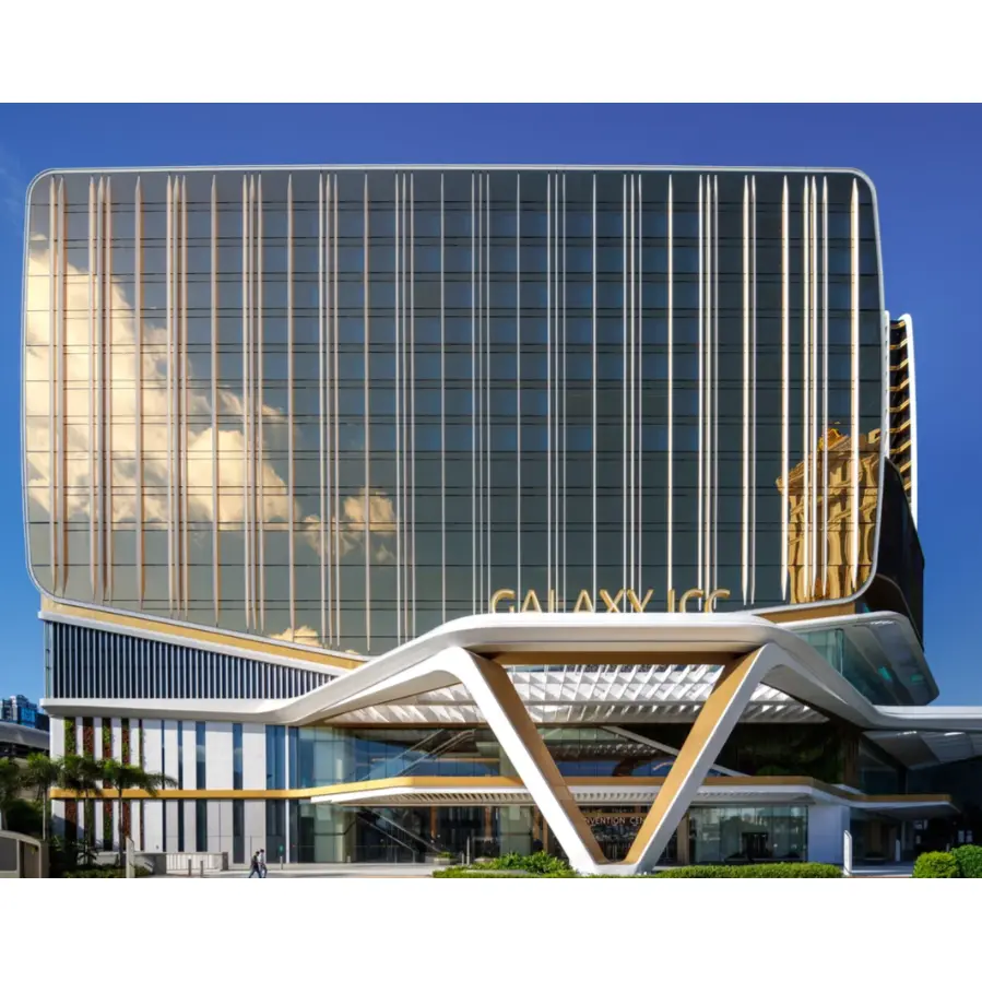 Tấm nhôm đơn có hình dạng không đều hỗ trợ xử lý bề mặt cong phức tạp, bao gồm các bề mặt cong đơn và cong đôi, cho phép tạo ra mặt tiền tòa nhà nổi bật về mặt thị giác. Chúng cũng có thể được tùy chỉnh cho các bức tường rèm nội thất có hình dạng bất thường, thích ứng với hành lang trần cao, thiết kế giếng trời, sảnh thang máy và các không gian nội thất khác, cân bằng chức năng kiến trúc với thiết kế thẩm mỹ và phá vỡ những hạn chế của bức tường rèm phẳng truyền thống.